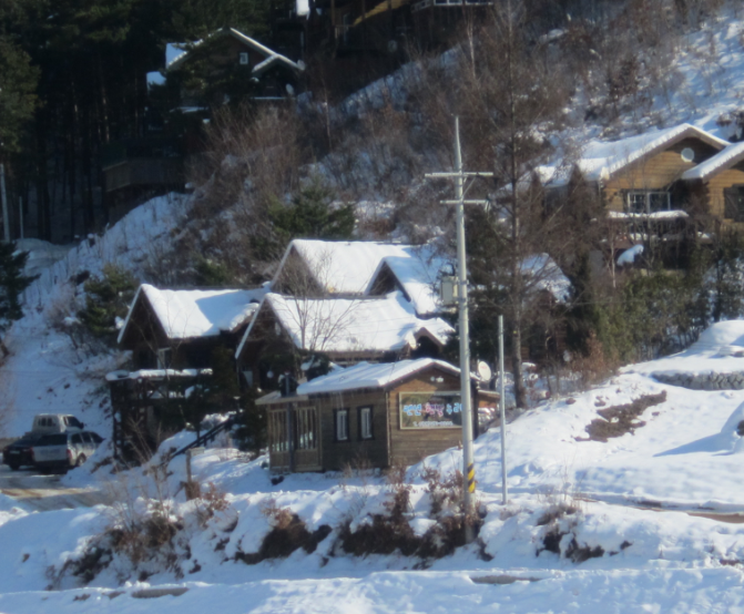 이렇게 비스듬히 한쪽 산 모퉁이에 각자 자리잡구