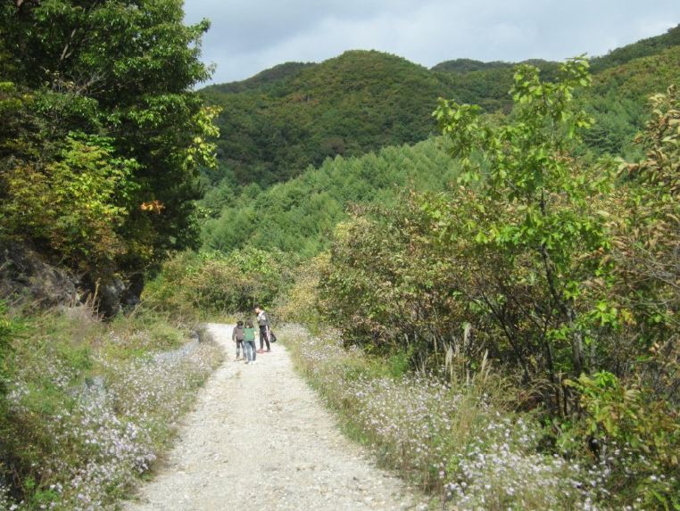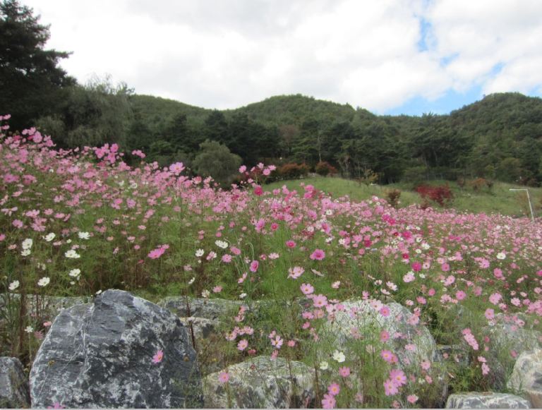 등산로 초입에 새로 코스모스 꽃밭을 조성해 놓아