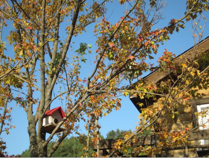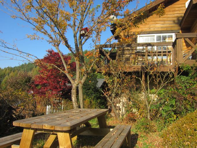 햇빛누리에서 젤 큰 방이 바로 맨 꼭대기에 멋지게 자리잡고 있는 아침햇살 방인데요, 넉넉한 데크에서 서너계단 내려오면 아늑한 잔디밭에 나무의자랑 식탁까지 별도로 준비되어 있답니다. ( 내년쯤엔.. 나무평상 같은걸 하나 더 두구 텐트도 치실 수 있게 마련해 볼까... 고민중 ^^) 아침햇살방의 옆면 모습을 사진으로 담아보았습니다. 삼촌께서 만들어 주신 이쁜 새집까지. ㅋㅋ