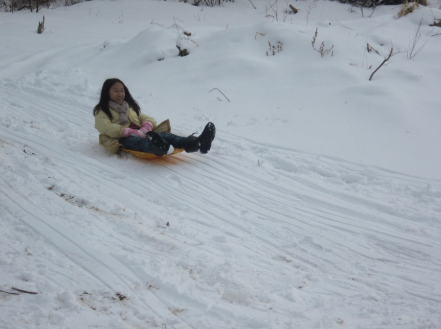 잘 나가겠다 싶은 곳에선 눈썰매가 슝~슝~~