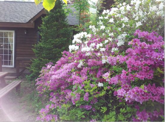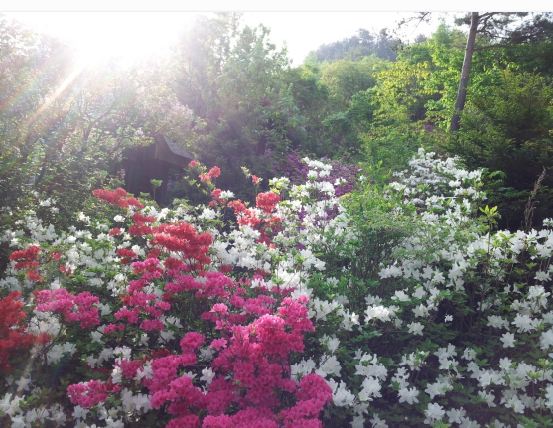 완전 꽃 천지예요~~ ^^* 저 남쪽지방엔 이미 다 져서 볼수 없는 철쭉이 햇빛누리에선 지금 완전 절정. 어느 방에서든 흐드러진 철쭉의 향연을 맘껏 구경하실 수 있는 햇빛누리의 가장 칼라풀한 찰나 입니다~~^^ ( 특히 달빛호수, 숲속의 아침 방을 이용하시면 꽃들에 둘러싸여 멋진 바비큐 파티를 ~~ ㅎㅎ )