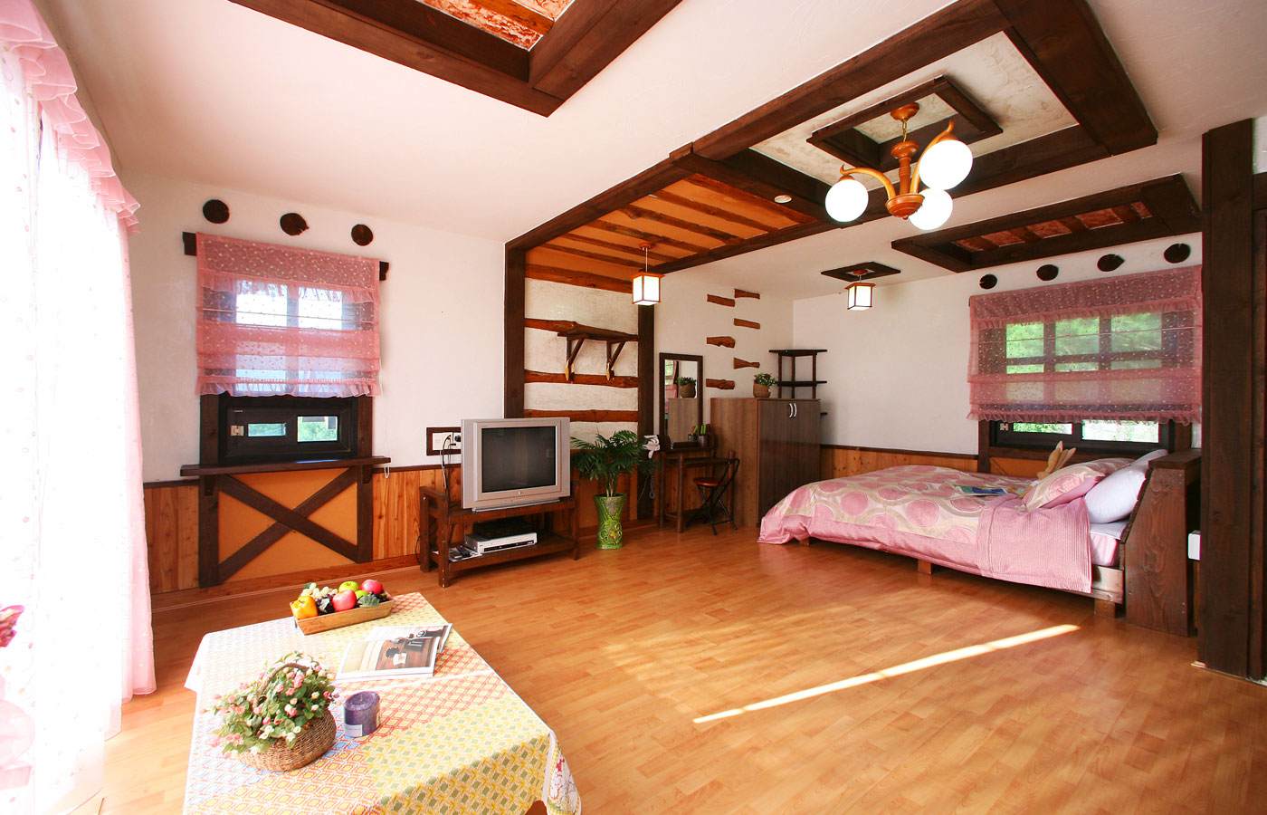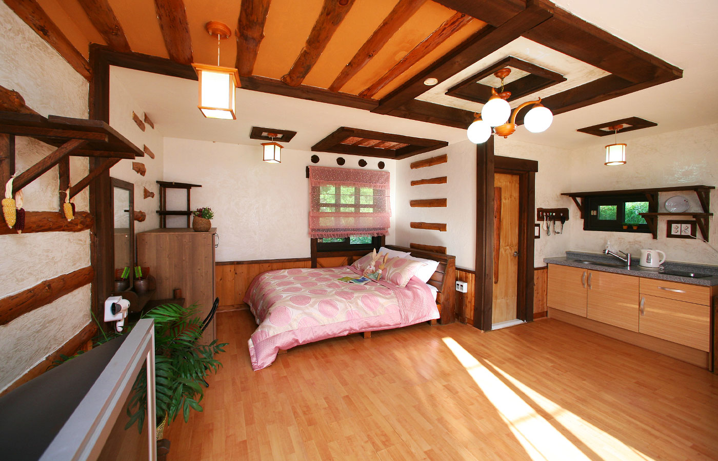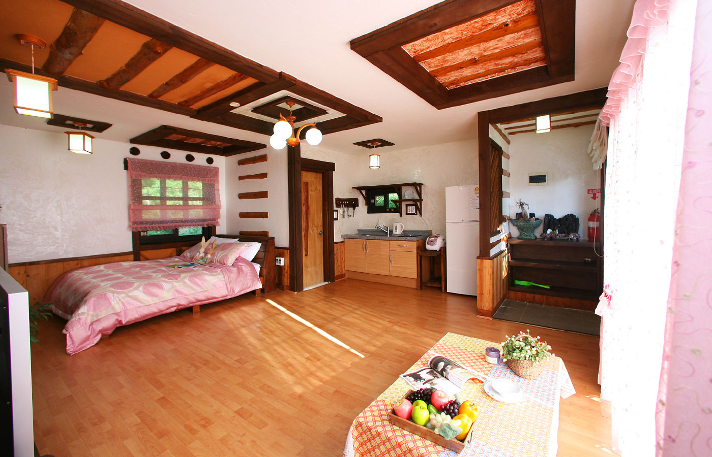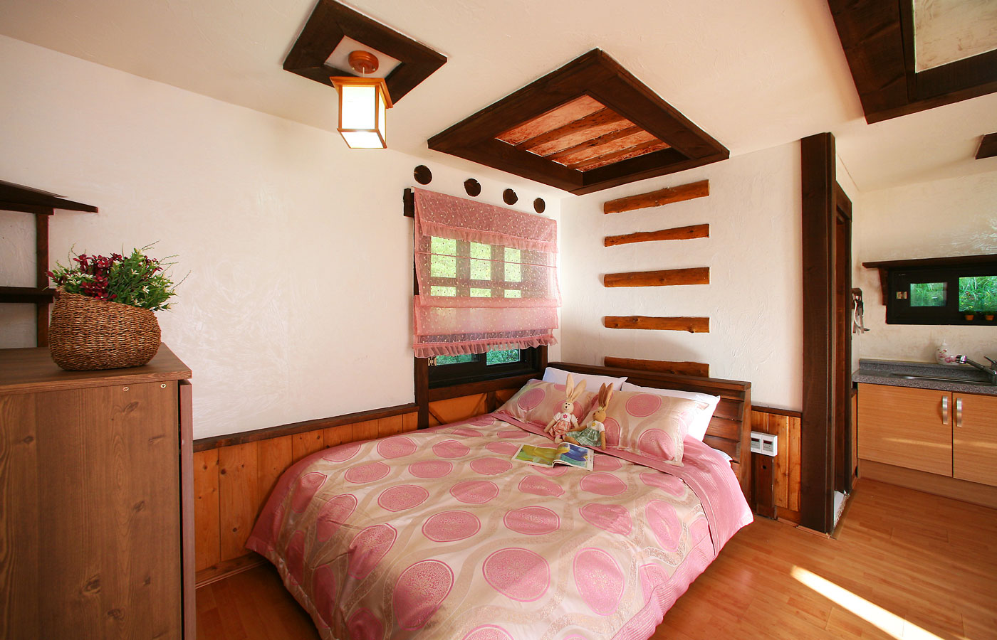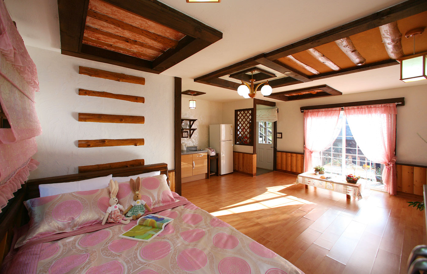 - 창살로 스며드는 꿈꾸는 별빛에 솔솔 단잠이 쏟아지는 단아한 공간입니다. 15평형의 여유로운 커플펜션으로 단독 데크에서 바비큐가 가능합니다.