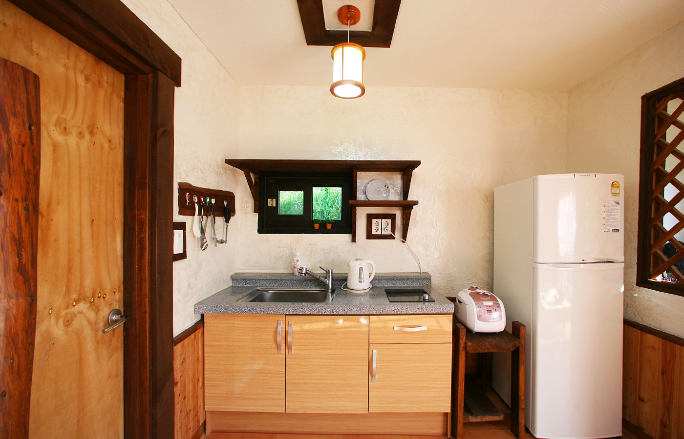 - 집기시설: 샤워실(샴프,린스,비누,치약,수건), TV(COOK), 냉장고, 전기압력밥솥, 커피포트, 주방 취사도구 일체, 핫플레이트, 화장대, 드라이기, 전자레인지, 에어컨