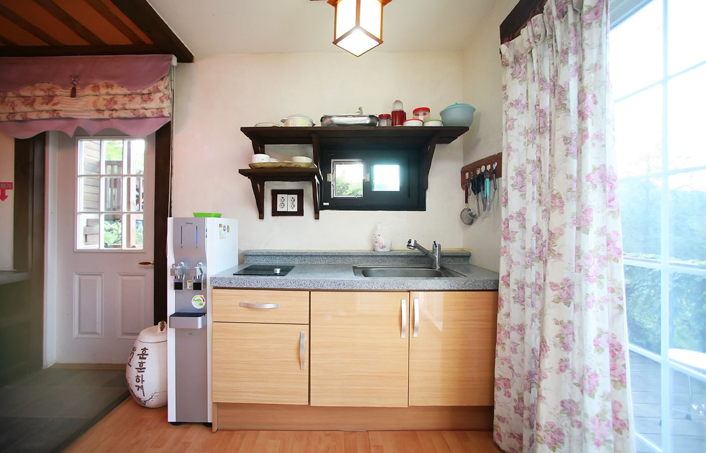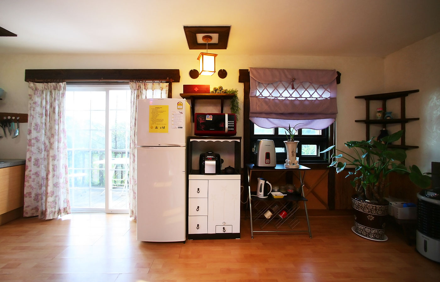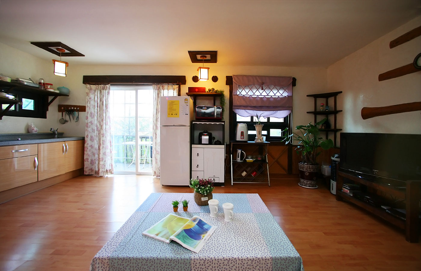 • 집기시설: 샤워실(샴프,린스,비누,치약,수건), TV(COOK), 냉장고, 전기압력밥솥, 커피포트, 주방 취사도구 일체, 핫플레이트, 화장대, 드라이기, 전자레인지,에어컨
